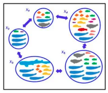 만약 A와 B지역에 다음과 같은 동물이 산다고 가정해보자.